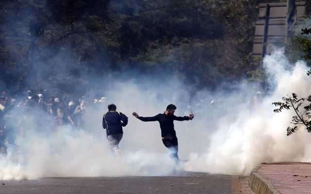 Δημοσιογράφοι του AFP άκουσαν προειδοποιητικά πυρά και είδαν την αστυνομία να χρησιμοποιεί δακρυγόνα κοντά στην πρεσβεία των ΗΠΑ.