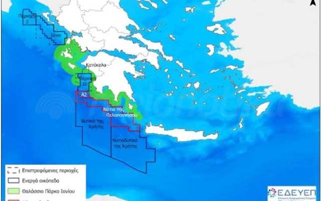 Υπεγράφη χθες από τον Υπουργό Περιβάλλοντος και Ενέργειας, κ. Σταύρο Παπασταύρου, Υπουργική Απόφαση με θέμα την διακήρυξη διεθνούς διαγωνισμού της Ελληνικής Διαχειριστικής Εταιρείας Υδρογονανθράκων και Ενεργειακών Πόρων Α.Ε. (ΕΔΕΥΕΠ Α.Ε.) για την παραχώρηση δικαιώματος έρευνας και εκμετάλλευσης υδρογονανθράκων στις θαλάσσιες περιοχές νοτίως της Πελοποννήσου ("Α2" και "Νότια της Πελοποννήσου") και στις θαλάσσιες περιοχές νοτίως της Κρήτης ("Νότια της Κρήτης 1" και "Νότια της Κρήτης 2").