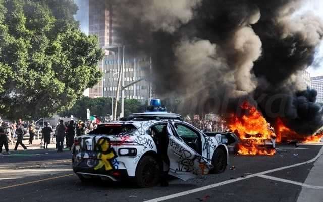 Η αστυνομία της αμερικανικής μεγαλούπολης χαρακτήρισε κάποιες συγκεντρώσεις "παράνομες", ισχυριζόμενη ότι οι διαδηλωτές πέταξαν κομμάτια τσιμέντου, μπουκάλια και άλλα αντικείμενα στην αστυνομία. Πολλά αυτοκινούμενα οχήματα της υπηρεσίας ταξί Waymo πυρπολήθηκαν σε κεντρικό δρόμο του Λος Άντζελες χθες το βράδυ, σύμφωνα με εικόνες από βίντεο.