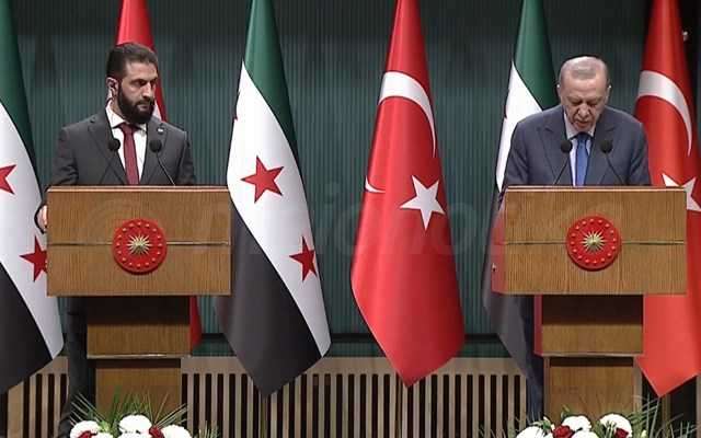 Ο Αλ Σάρα ευχαρίστησε τον Ερντογάν για τη στήριξη της Τουρκίας στην προστασία της εδαφικής ακεραιότητας και κυριαρχίας της Συρίας, αναφέρει το πρακτορείο Reuters.