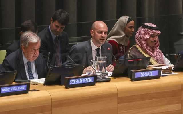 Σε ερώτηση σχετικά με το τελικό κείμενο των αποτελεσμάτων της Διάσκεψης και το χρονοδιάγραμμα αναγνώρισης της Παλαιστίνης, ο κ. Μπαρό ανέφερε ότι το σχέδιο βασίζεται στις εργασίες 18 θεματικών ομάδων και περιλαμβάνει λεπτομερές πλαίσιο για τη μεταπολεμική Γάζα.