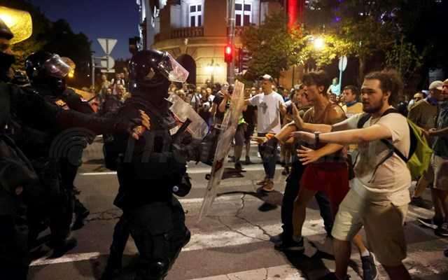Συγκρούσεις ξέσπασαν επίσης στο Βελιγράδι, όπου η αστυνομία εμπόδισε διαδηλωτές να κατευθυνθούν προς τα κεντρικά γραφεία του SNS, καθώς και στη δεύτερη μεγαλύτερη πόλη της Σερβίας, το Νόβι Σαντ.