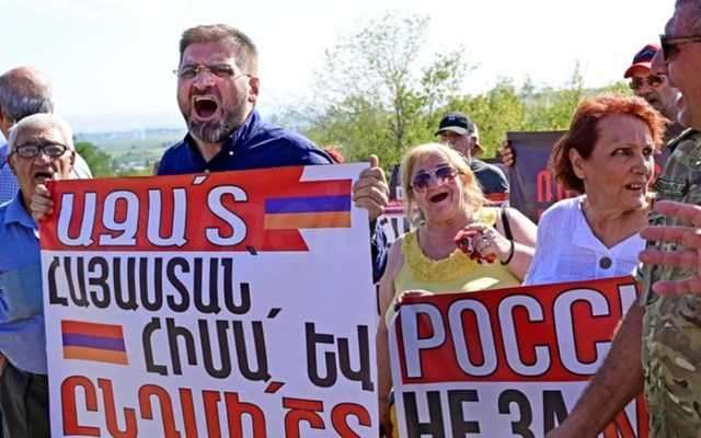 "Ζητάμε να φύγει η ρωσική βάση από το αρμενικό έδαφος" είπε ένας από τους διοργανωτές, ο Αρμάν Μπαμπατζανιάν, εκτιμώντας ότι "δεν εγγυάται την ασφάλεια αλλά δημιουργεί εσωτερική απειλή".