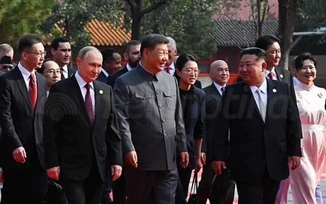 Ωστόσο, το ντεμπούτο του στην πολυμερή διπλωματική σκηνή στο Πεκίνο μετά την ανάληψη της εξουσίας πριν από 14 χρόνια λέει μια διαφορετική ιστορία. Ο Κιμ και ο Κινέζος πρόεδρος Σι Τζινπίνγκ, μαζί με τον Ρώσο πρόεδρο Βλαντίμιρ Πούτιν, αντάλλαξαν χαμόγελα και σχόλια καθώς περπατούσαν στο κόκκινο χαλί που οδηγούσε στην κεντρική εξέδρα, πριν από τη στρατιωτική παρέλαση για την 80ή επέτειο από το τέλος του Β' Παγκοσμίου Πολέμου. Οι τρεις τους, μαζί με άλλους παγκόσμιους ηγέτες, μοιράζονται έναν κοινό σκοπό για την αναδιαμόρφωση της παγκόσμιας ισορροπίας ισχύος.