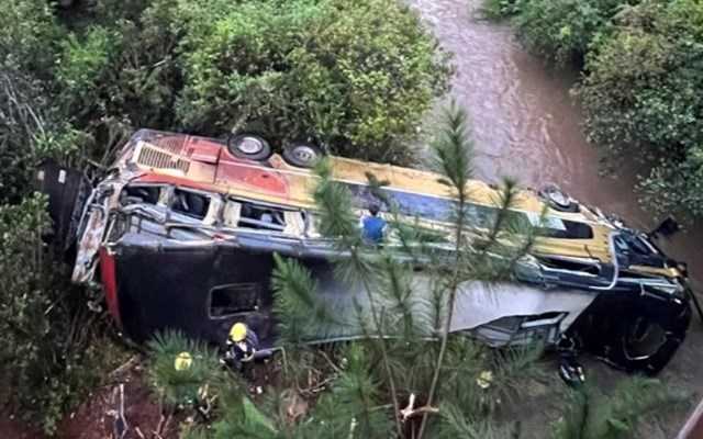 Ως αποτέλεσμα της σύγκρουσης, το λεωφορείο πήρε κλίση και έπεσε από τη γέφυρα στην κοίτη ενός ποταμού, σε βάθος αρκετών μέτρων.