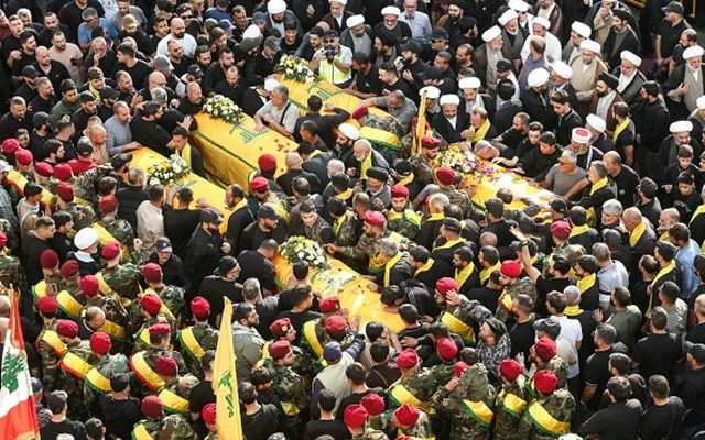 Εκατοντάδες άνθρωποι συγκεντρώθηκαν στη Ναμπατίγια του νότιου Λιβάνου την Κυριακή για να θρηνήσουν πέντε μέλη της Χεζμπολάχ που σκοτώθηκαν σε πρόσφατες ισραηλινές επιθέσεις, μετέδωσε το πρακτορείο ειδήσεων AFP, καθώς το Ισραήλ προειδοποίησε για εντατικοποίηση των επιθέσεων εναντίον της υποστηριζόμενης από το Ιράν οργάνωσης.