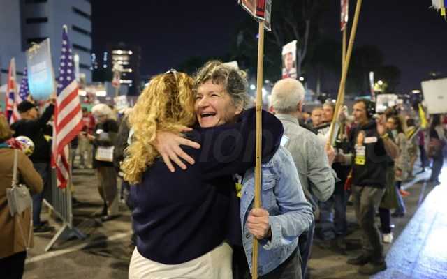 Στην "πλατεία των ομήρων" στο Τελ Αβίβ, χιλιάδες άνθρωποι υποδέχθηκαν την επιστροφή τους με δάκρυα, τραγούδια, πανηγυρισμούς, αγκαλιές.
