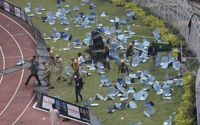 Ο Αργεντινός σταρ έμεινε στο γήπεδο μόλις για λίγα λεπτά, γεγονός που εξόργισε τους οπαδούς, οι οποίοι ξήλωσαν τα καθίσματα και πέταξαν μπουκάλια και καρέκλες προς τον αγωνιστικό χώρο. Όσοι βρέθηκαν στο γήπεδο, πλήρωσαν 12.000 ρουπίες (113 ευρώ) για να τον δουν από κοντά.