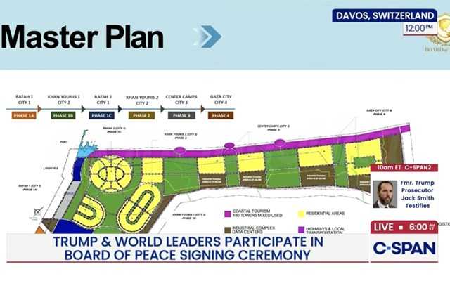 Μετά την τελετή υπογραφής του "Συμβουλίου Ειρήνης" στο Νταβός, ο Τραμπ κάλεσε τον γαμπρό του Τζάρετ Κούσνερ να παρουσιάσει το σχέδιο ανάπτυξης για τις πόλεις και κωμοπόλεις της Γάζας, που έχουν καταστραφεί μετά από δύο χρόνια πολέμου.