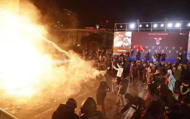 Η αστυνομία διέλυσε απόψε άλλη μια μαζική διαδήλωση της δεξιάς αντιπολίτευσης μπροστά στην έδρα της κυβέρνησης στα Τίρανα, όπου σημειώθηκαν επεισόδια, με κάποιους από τους συγκεντρωμένους να πετούν βεγγαλικά και βόμβες μολότοφ και τους αστυνομικούς να απαντούν εκτοξεύοντας νερό υπό πίεση.