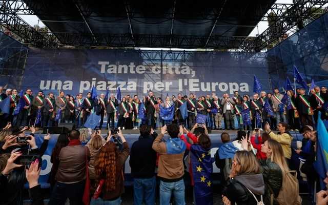 Περίπου τριάντα χιλιάδες πολίτες συμμετείχαν σε συγκέντρωση με κύριο σύνθημα "για την Ευρώπη", η οποία οργανώθηκε σήμερα στην Πιάτσα ντελ Πόπολο της Ρώμης.