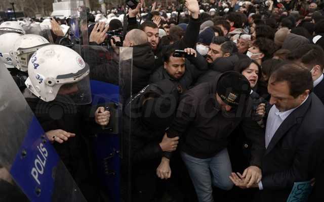 Φοιτητές βγήκαν στους δρόμους φωνάζοντας: "Δεν φοβόμαστε, δεν θα φιμωθούμε, δεν θα υπακούσουμε" - ένα σύνθημα που είναι κοινό της αντιπολίτευσης στην Τουρκία.
