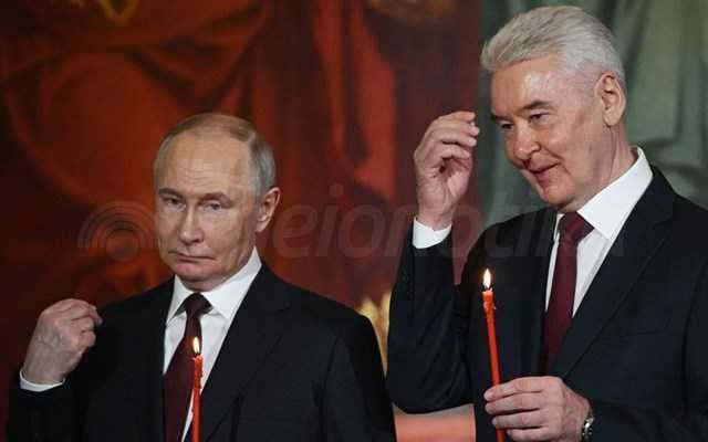 Ο πρόεδρος Βλαντίμιρ Πούτιν και ο δήμαρχος της Μόσχας Σεργκέι Σομπιάνιν παρακολούθησαν μαζί με άλλους πιστούς την αναστάσιμη λειτουργία, στην οποία χοροστάτησε ο επικεφαλής της Ρωσικής Ορθόδοξης Εκκλησίας Πατριάρχης Κύριλλος, πιστός υποστηρικτής του ρώσου ηγέτη και του πολέμου στην Ουκρανία.